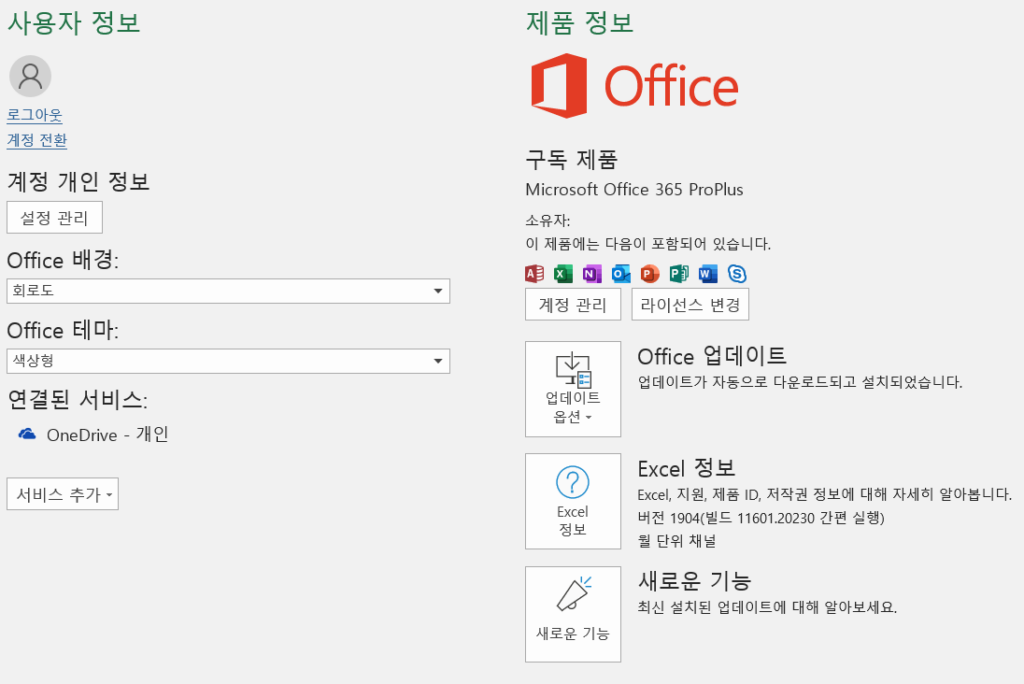 여기서 내려받는 설치 관리자를 실행하면 워드, 엑셀 등 데스크톱 앱이 일괄 설치되며, 첫 실행 시 계정으로 서명이 곧 정품 활성화가 됩니다.